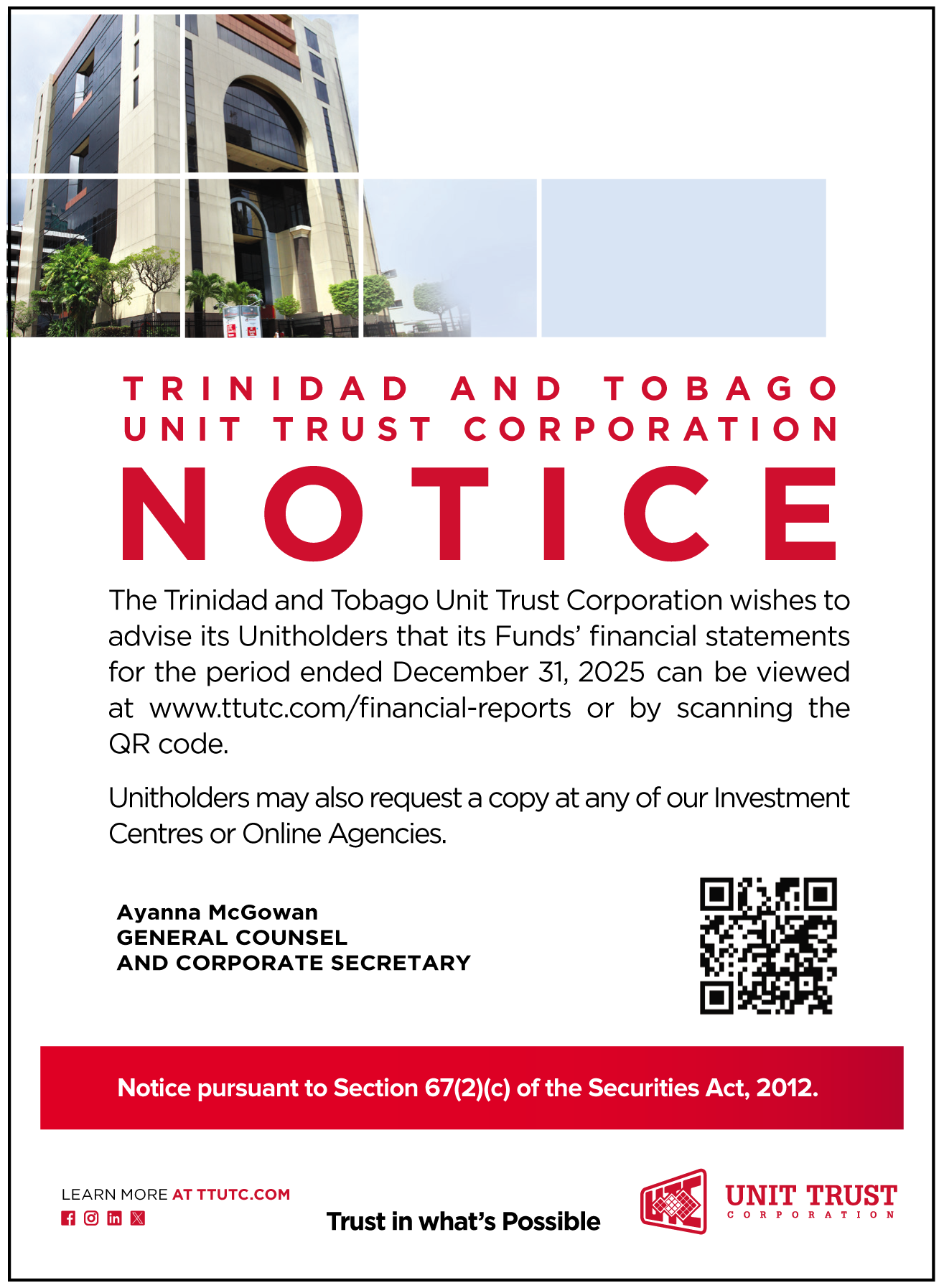 Notice: TTUTC 2025 Audited Financial Reports for the year ended December 31